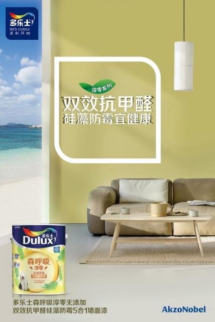 像最近全新上市的多乐士森呼吸淳零双效抗甲醛5合1系列就采用了淳零科技。该系列一共有三款产品,分别是多乐士森呼吸淳零无添加双效抗甲醛竹炭抗菌5合1墙面漆、多乐士森呼吸淳零无添加双效抗甲醛硅藻抗菌5合1墙面漆和多乐士森呼吸淳零无添加双效抗甲醛硅藻防霉5合1墙面漆。