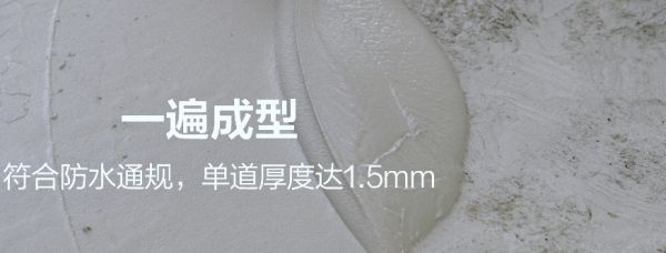 普通的滚涂/刷涂型水泥基防水产品需涂刷2遍以上才能达到防水效果,德高防水地宝一遍施工即可成型,厚度达1.5mm以上,轻松满足国家技术规范对防水层厚度的要求。(聚合物水泥基防水用于水平面时,防水层厚度应≥1.5mm)。