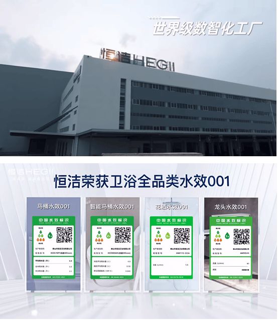 恒洁的生产智造,从原材料、生产工艺选择,到生产过程及产品使用全程,坚持环保承诺,使用绿色清洁能源、生产废料及热能回收再利用、工厂电镀废水0排放等,成为绿色工厂的标杆。在产品端,恒洁包揽智能马桶、普通马桶、花洒、龙头全品类“水效标识备案001号”,以技术创领节水新净界,以品质践行环保承诺。