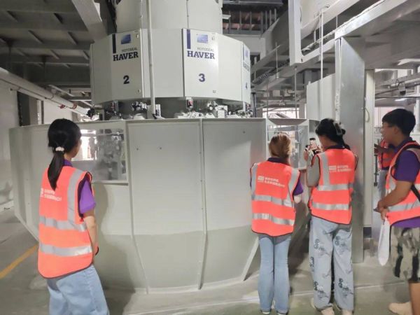 在参观过程中,讲解员向师生们详细介绍了工厂的生产设备和技术。生产车间从上料、预混、搅拌等环节,全程采用SCADA生产控制系统,物料的进出均通过流量计、温度计、液压计、压力表、切断阀、调节阀、称重仪等五百多个自控精密仪表及组件系统自动完成。此外,生产用水采用5级RO反渗透纯水设备,水质达到人体饮用的纯净水级别,从而在生产过程中避免人为添加杀菌剂等有害物质,确保产品环保、零甲醛。