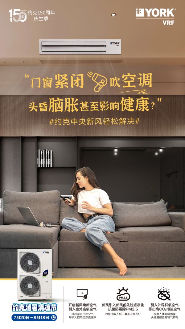 赶走三伏天的暑热和湿气,畅享清凉夏季,从拥有一台约克VRF中央空调开始!7月20日-8月18日,约克VRF中央空调消暑清凉节,带你畅享多重福利与夏季美好体验。