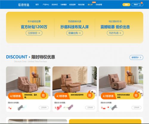该平台主要有:家具(沙发、床、桌椅等)、家居饰品、家纺用品、厨卫用品等。