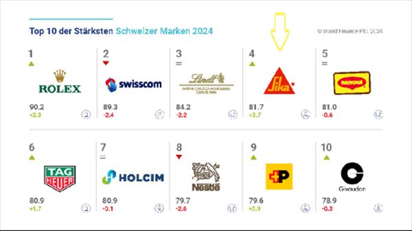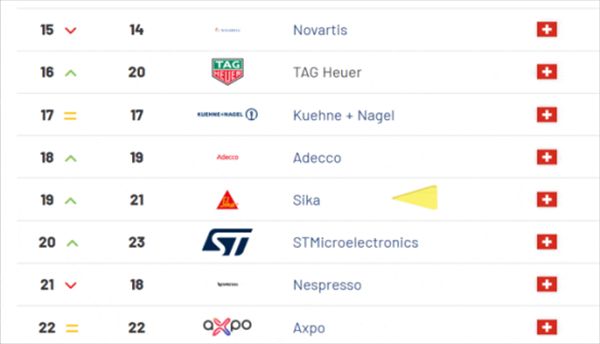 在最近的几年中,西卡在瑞士品牌排行榜上稳扎稳打,通过不懈的努力,取得了一个又一个的阶段性胜利,特别是在全球市场充满挑战的环境下,经受住了考验,持续发展前进。