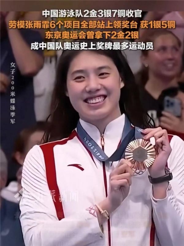 而一向有中国游泳队劳模之称的张雨霏更是其中的代表,本届巴黎盛会几乎每天都有比赛,总共参加了6个项目的决赛,全部站上领奖台,得牌率高达100%。鉴此,张雨霏已斩获6枚奖牌,个人职业生涯奥林匹克奖牌数达到10枚,成为中国队奥林匹克史上奖牌数最 多的运动员。
