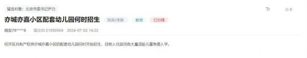 关于小区幼儿园招生的问题,7月官方也有了回复: