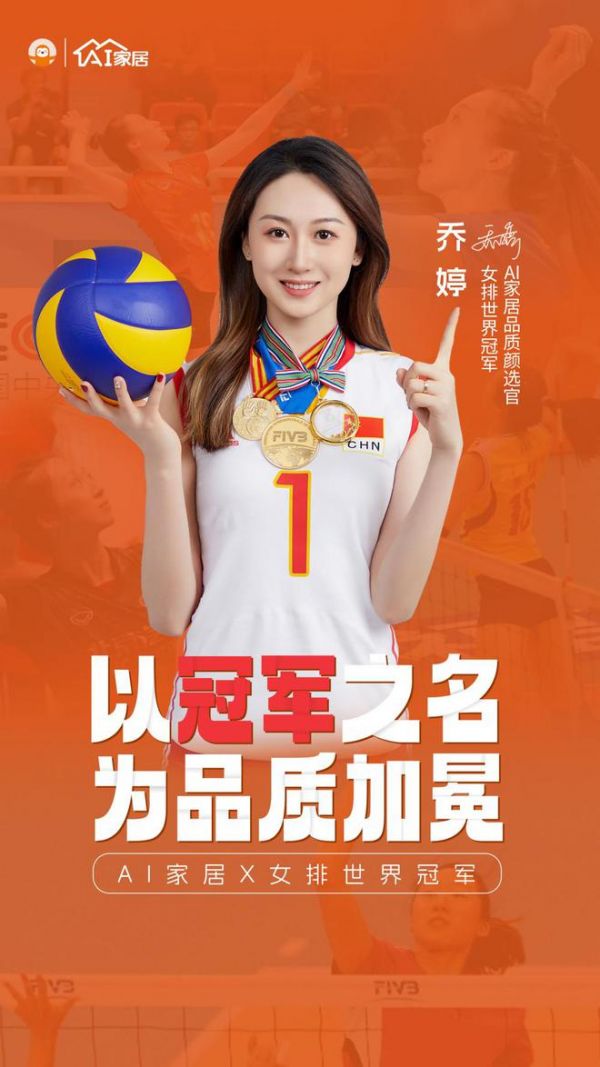 一个是获FIVB国际排联认证的世界冠军选手,很多球迷眼中的“排球女神”;一个是拥有20多年定制经验沉淀的家居新物种,备受Z时代家居消费者青睐的轻时尚全案定制品牌。乔婷过硬的专业技术、出众的形象气质以及积极向上的生活态度和AI家居的品牌调性及产品特性十分契合,二者一拍即合,双向奔赴。