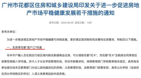 8月6号,广州市花都区住房和城乡建设区发布《关于进一步促进房地产市场平稳健康发展若干措施的通知》。
