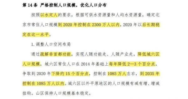 当初在《北京城市总体规划(2016年-2035年)》中设定目标,即北京全市人口规模设定为2300万左右,城六区人口控制在1085万人左右。