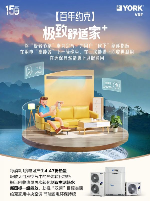 对于用户而言,约克VRF中央空调不仅仅是一款中央空调产品,更是现代家庭追求高品质生活的理想选择。在约克VRF中央空调的陪伴下,让我们共同开启一段关于家的美好旅程吧。