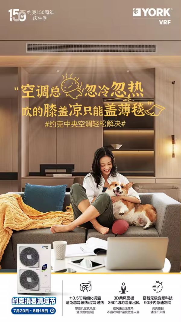 这个夏天,除了赛场上体育健儿们的卓越风姿之外,消暑也成为了人们日常最多提及的话题。都说没有空调的夏天是不完整的,为进一步满足消费者夏日清凉需求,7月20日-8月18日约克VRF中央空调消暑清凉节火爆来袭,围绕“产品供给、多重优惠、服务保障”三方面,为广大消费者带来一站式清凉体验与极致舒适家。
