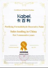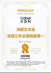 尚普咨询集团通过对净醛艺术漆市场深度调研后,确认了2021-2023年卡百利在净醛艺术漆全渠道市场中销量第一的地位,并为卡百利颁布 “卡百利 净醛艺术漆连续三年全国销量第一”市场地位认证证书。