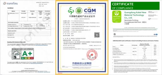 2023年7月,卡百利净醛艺术漆获得中国绿色建材产品认证,证明产品符合“节能、减排、安全、便利和可循环”特征。2024年2月,卡百利净醛艺术漆获美国绿色卫士GREENGUARD 认证、GREENGUARD 金级认证, 这是目前世界上较为严格、全面的室内空气质量标准之一。
