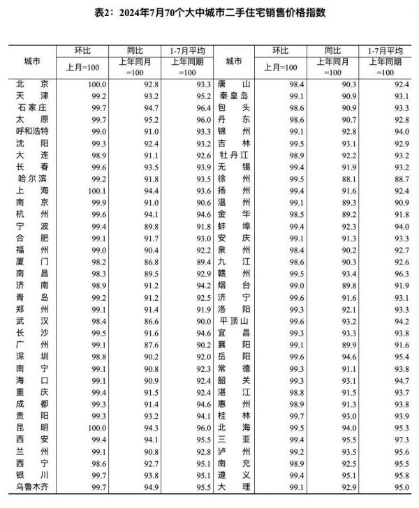 7月份,一线城市二手住宅销售价格环比下降0.5%,降幅比上月扩大0.1个百分点;同比下降8.8%,降幅比上月收窄0.2个百分点。