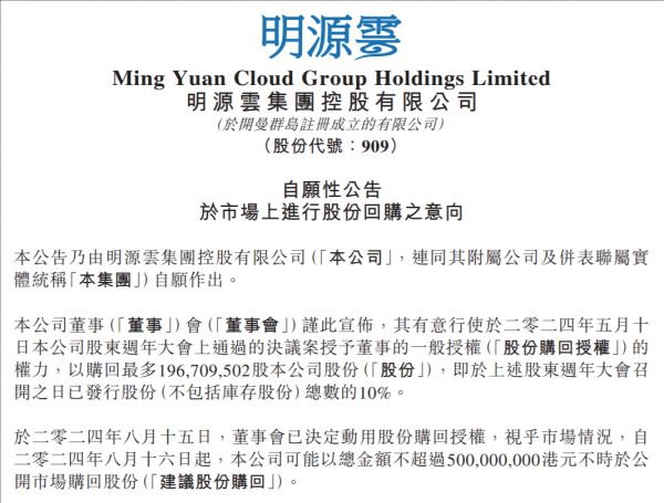 在股东回报方面,明源云于8月15日宣布将进行最高金额不超过5亿港元的回购计划,旨在重塑市场对公司的估值逻辑。