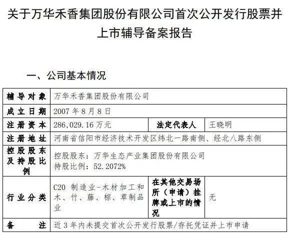 8月15日消息,万华禾香集团股份有限公司拟首次公开发行股票,已在河南证监局辅导备案。东方证券承销保荐有限公司担任辅导机构。万华禾香集团位于河南省信阳市经济技术开发区,注册资本28.6亿元。