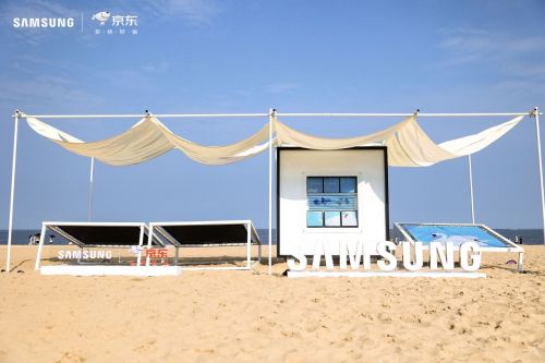 近日,三星联手京东在阿那亚礼堂旁建成了一座「日落影院」,并邀请三星家电品牌大使、知名艺人金晨带来一场“浪漫不断电”的京东直播活动。活动现场,两位京东快递小哥在沙滩上安装电视的画面,让金晨感叹“电视都送沙滩上了”。