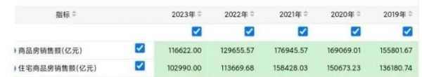 2021年,商品房销售额来到了巅峰,其中住宅销售额高达15万亿元。