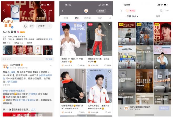 随后,奥普迅速在小红书、抖音、微博等头部社交媒体平台策划了一系列围绕潘展乐以及其他游泳运动员为重心的短视频内容和话题互动。真实地呈现了潘展乐真诚可爱的生活日常以及他对奥普产品的使用体验,巧妙地将奥普品牌及其明星产品“双氧浴霸”融入互动中,形成了独特的品牌故事和记忆点,也将其“冠军品质”和“冠军选择”的产品保障植入了目标群体的心智。