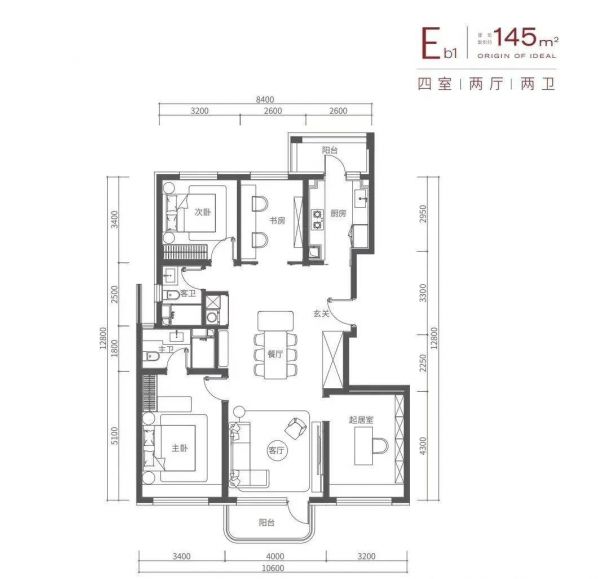 主力户型:108㎡三居、125㎡三居、145㎡四居。