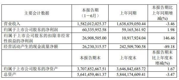 8月22日,惠达卫浴(603385.SH)发布2024年半年度报告,公司实现了主营业务收入15.82亿元,同比下降 3.46%;归属于上市公司股东的净利润约为6033.60万元,同比增长1.98%。