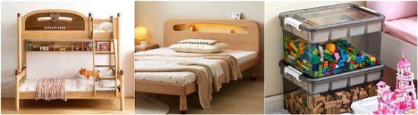 绘本、玩具、衣物等儿童相关物品繁多,特别是小户型家庭的儿童房亟需通过巧妙设计达到扩容效果,功能集成型的儿童家具成为当下的趋势品类。采用高低床设计的LINSY KIDS饼干小熊床,更适合二胎家庭使用;具有双层置物功能的原始原素京喜夜光儿童床,可放置睡前读物、毛绒玩具等物品,轻松节约室内空间。针对儿童房的玩具收纳,顶部划分6大区域的禧天龙积木玩具收纳箱30L,让孩子轻松变身“收纳师”。