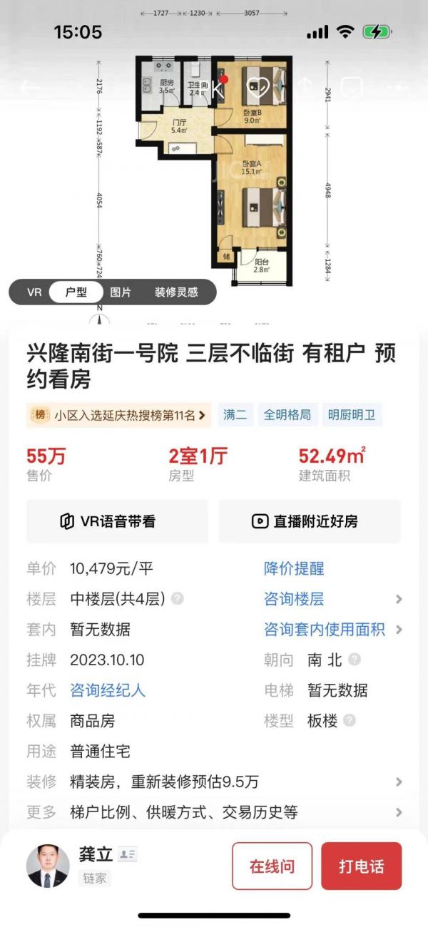房子位于延庆区康庄兴隆街1号小区,是一套76平米的两居,挂牌售价仅53万,单价不足7000元/平,据置业顾问说,还有谈价空间。