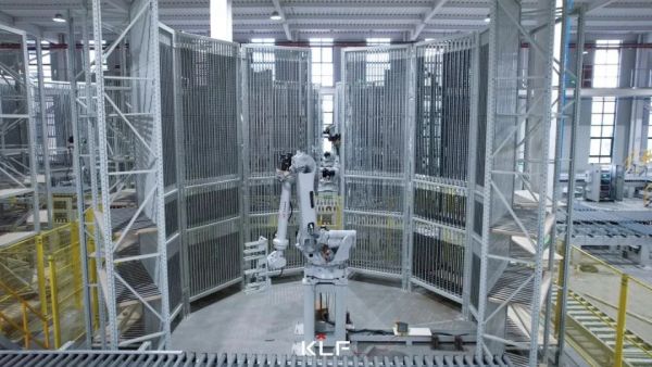 客来福新桥工厂实现板材全线自动化分拣,真正做到每一块板材无需落地、几乎不经人手。书本架是板材的储存空间,选板一共由六台机器同时工作,运行效率显著提高。