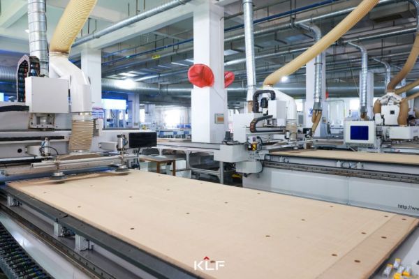 客来福引进德国伊玛激光封边机,采用四机连线自动封边,从预铣到封边再到抛光,降低了对工人操作熟练度的要求,从细节处确保板件封边作业质量。