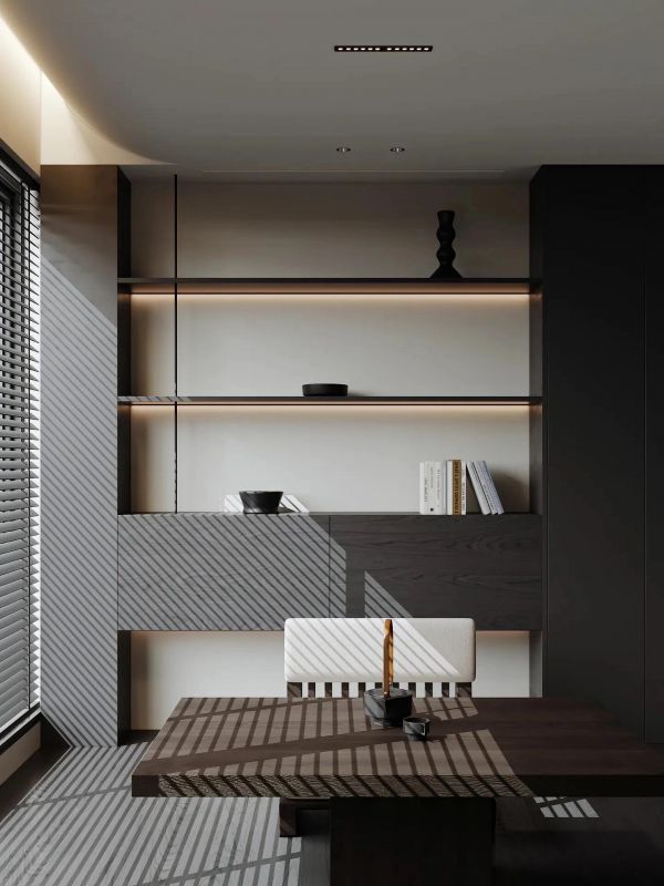 这是一套意式极简的设计,采用黑白灰为主色系,充满了宁静与优雅的气息。