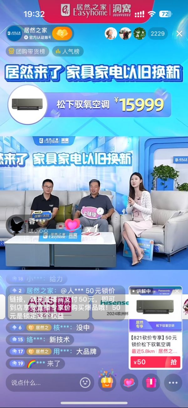 司庆嘉年华的热烈氛围在全国线下门店蔓延开来,线上活动也是热闹非凡。在抖音平台,居然之家成功举办了两场“居然来了·家具家电以旧换新”大型直播活动,成为集团“居然云卖场”战略布局的又一重要里程碑。
