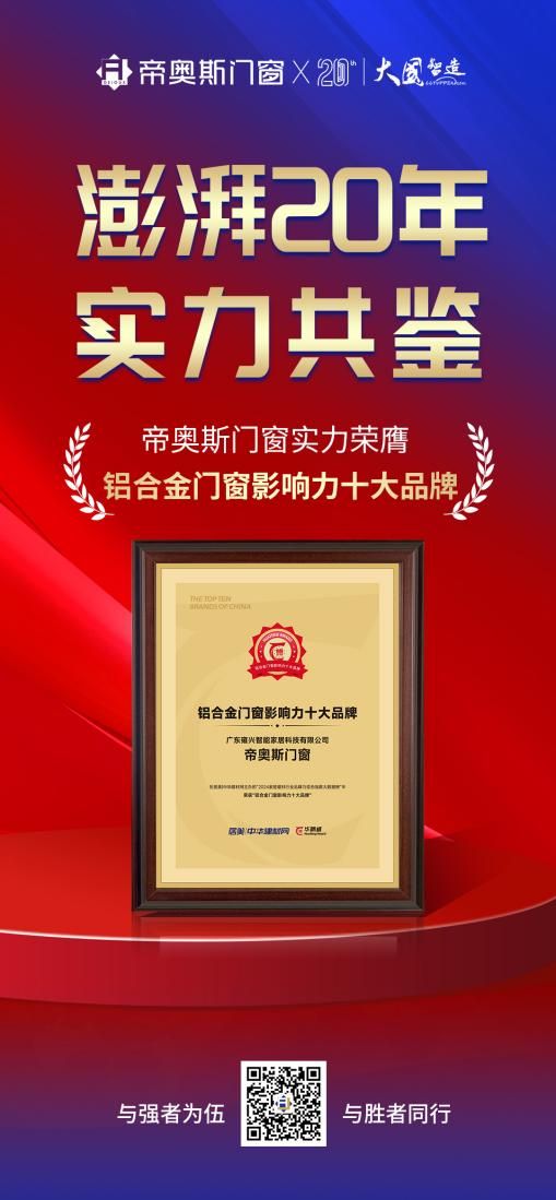 载誉前行 | 帝奥斯门窗再度荣获“铝合金门窗影响力十大品牌”和“铝合金门窗十佳品牌”双项殊...