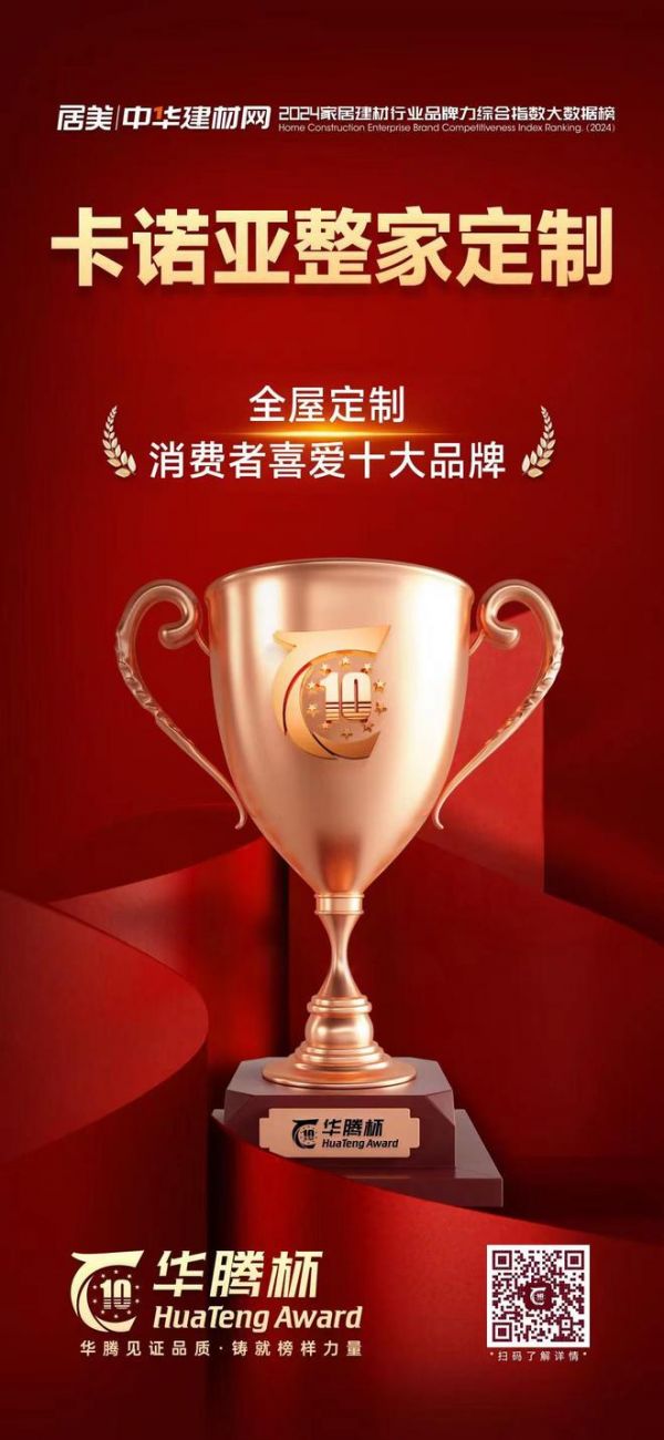 卡诺亚荣获「全屋定制消费者喜爱十大品牌」