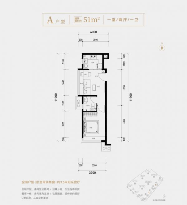 51㎡一室一厅一卫、69㎡二室一厅一卫、74㎡二室两厅一卫、88㎡三室两厅一卫、99㎡三室两厅两卫、104㎡三室两厅两卫、134㎡四室两厅两卫