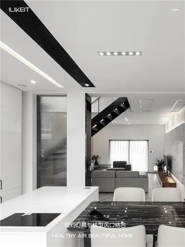 设计师们可以根据客户的需求,自由调整风口的安装位置、灯光方案以及出风方式,打造出定制化的居住体验。从极简风、工业风到现代奢华,埃瑞德灯控风口的多样性与可调节性使其能够完美适应各种室内设计风格,让每一个空间都拥有独特的个性表达。