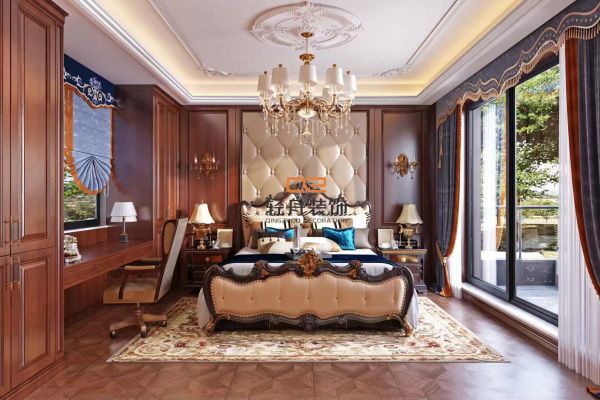 今天给大家分享的是泰安国悦山230㎡联排别墅的装修案例,此工地在扩建后,使用面积在400㎡左右,地下二层风格为古典中式,诠释了传统东方之美,挑空的设计,彰显出大宅的风范。一层及卧室风格为古典美式,更显豪华与优雅。