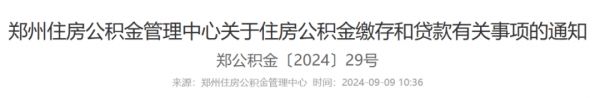 9月9日,郑州住房公积金管理中心发布《关于住房公积金缴存和贷款有关事项的通知》。