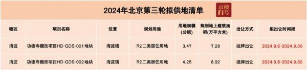 在2024年北京三批次拟供地清单里,2宗海淀住宅用地出现其中,预计9月30号之前会挂出。