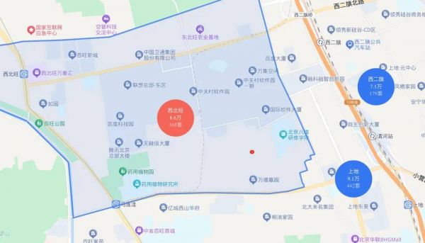 地块位于西北旺镇,北侧紧邻互联网宇宙中心“中关村软件园”,南侧2.5公里左右是北五环。