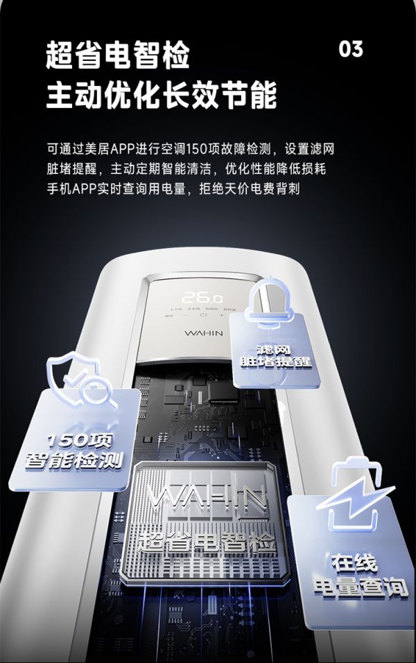 此外,用户还可以通过美居APP以及华凌智联小程序在线查询空调电量,主动进行空调150项故障检测,通过定期56℃高温智能清洁、便捷抽拉式滤网清洗,外机智能除尘,优化性能减少能耗,实现长效节能,省电更省心。