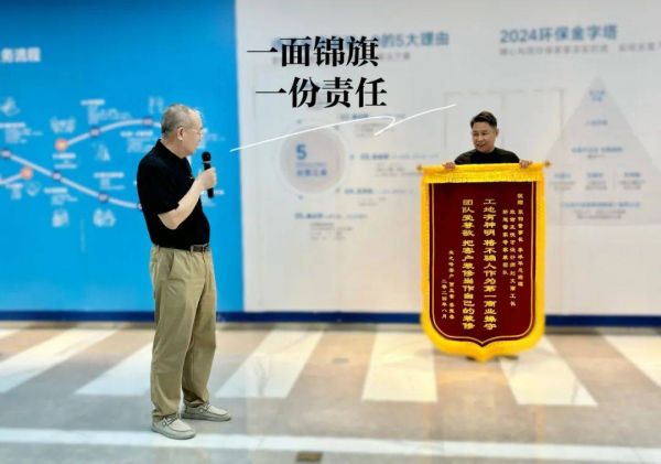 赠旗的贾玉奎先生,退休前是国家市场监督管理总局发展研究中心研究员,中国质量(市场监管)研究与教育联盟秘书长,退休后持续关注和研究质量、品牌、市场、监管工作。