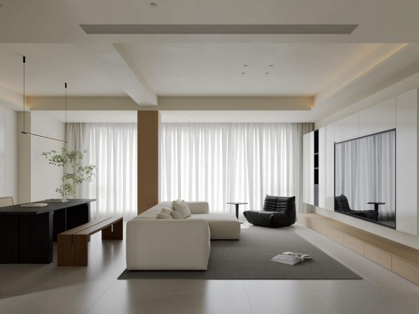 整个设计简洁而不失格调,现代感十足。每一处细节都经过精心打磨,展现出一种高雅而舒适的生活态度。无论是休息、阅读还是娱乐,客厅都能为人们提供一个理想的场所。