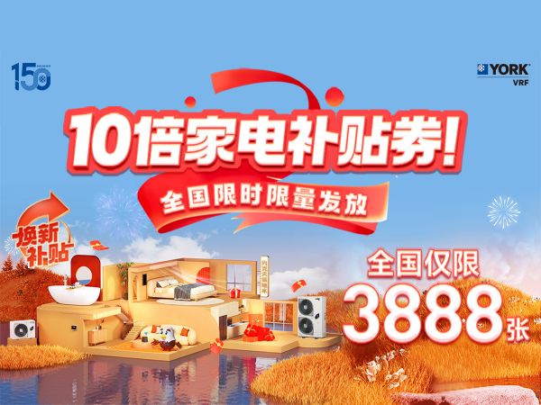 在“金九银十”装修旺季到来之际,约克VRF中央空调特别奉上了满满的诚意,为广大消费者带来一场精彩纷呈的“双节团圆聚 约惠墅适家”双节钜惠活动。锁定9月13日晚【约克VRF空调】视频号官方直播间,约克VRF中央空调为您贴心准备了多重钜惠,购机享大额家电补贴券,更有家电焕新豪礼相送,不负每一份热爱与期待。