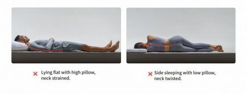 不仅是床垫,传统枕头因其固定的结构,难以做到贴合人不同睡姿下的颈椎曲度。颈部和肩膀在不同睡姿下(如仰卧或侧卧),需要的支撑不同,单靠一个枕头无法自动整夜适应睡姿的变化,给予恰当的支撑。
