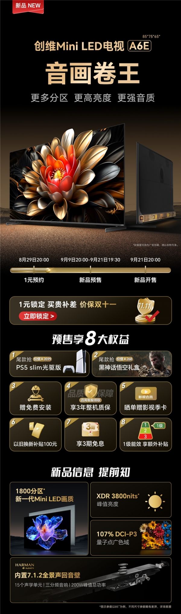 创维A6E预售进行中,同级唯一内置回音壁与同级最高分区
