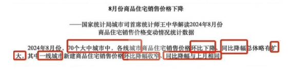 具体数据:全国新房价格8月环比下跌0.7%,较7月跌幅是0.6%,环比跌幅扩大0.1%,这也是自2023年5月以来持续的环比下跌;