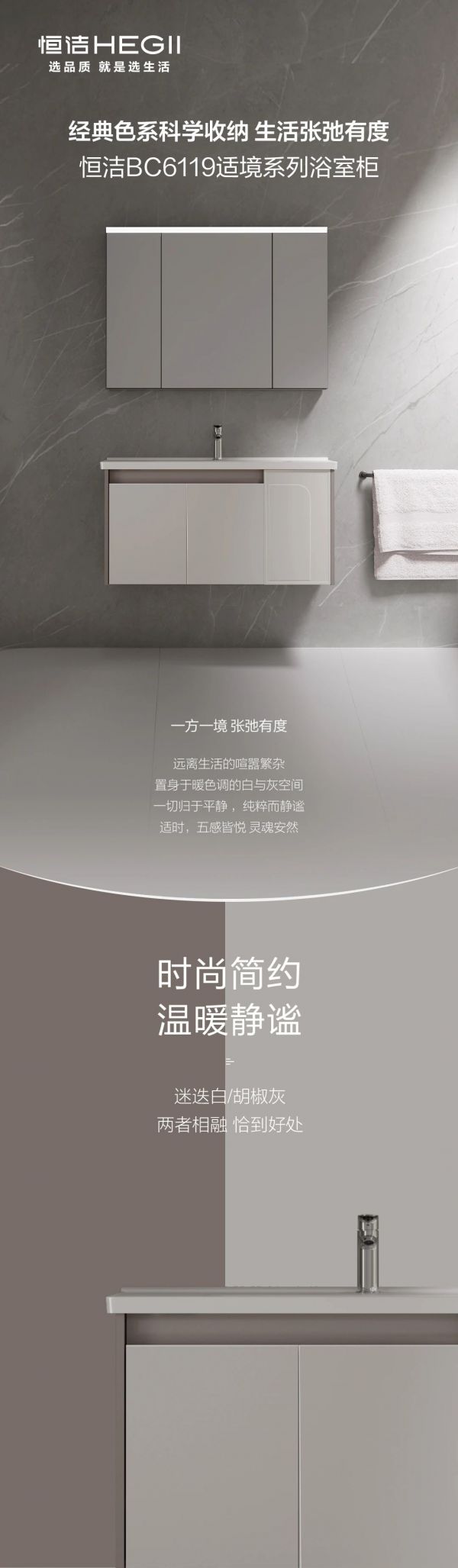 恒洁BC6119适境系列浴室柜 经典色系科学收纳 生活张弛有度