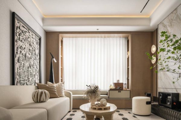 同时,飘窗区域被打造成多层收纳凹龛,挖掘窗边额外的储物空间,满足艺术品的展示或者书籍、装饰品等存放。