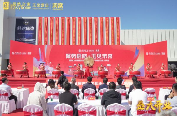 鼓声如雷,震撼人心,大鼓节目《鼓动未来》以强劲的臂力和精准的节奏迅速点燃了庆典现场的氛围。居然之家智能家居体验中心玉泉营店开业启动仪式于上午10时58分拉开帷幕。丰台区玉泉营街道办事处副主任赵越、丰台区玉泉营街道合作发展办负责人魏占松、草桥村党委副书记/草桥村委会副主任/北京草桥实业总公司副董事长刘宝杰、北京草桥实业总公司总经理王然、丰台区商务局副局长顾艳平、北京家居行业协会会长/远东神华总裁杨占江、东方家园董事长高博、居然之家董事长兼CEO汪林朋、居然之家集团执行总裁王宁等出席仪式,与现场的商户代表、媒体代表、消费者朋友等数千人齐聚一堂,共同见证玉泉营店重装升级,扬帆起航。
