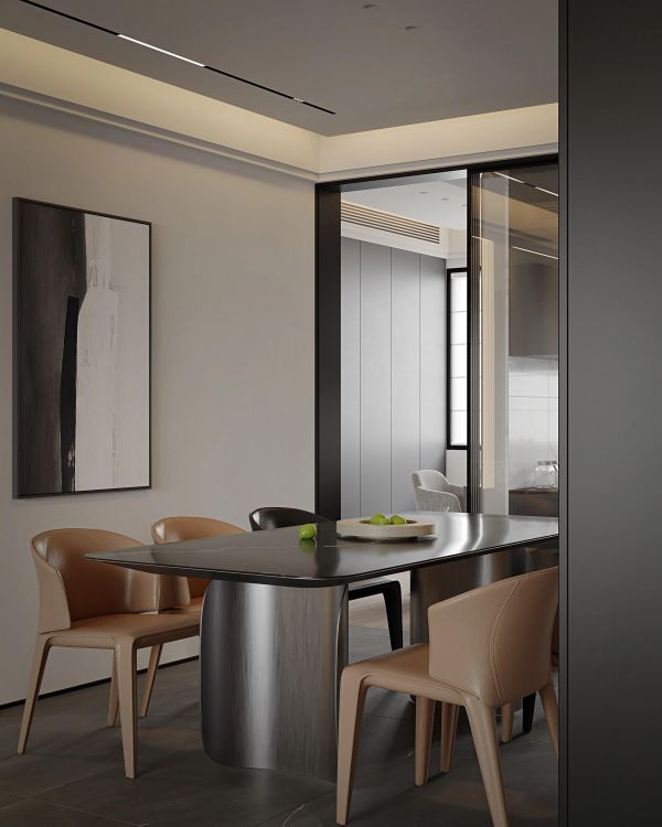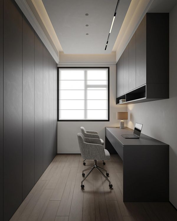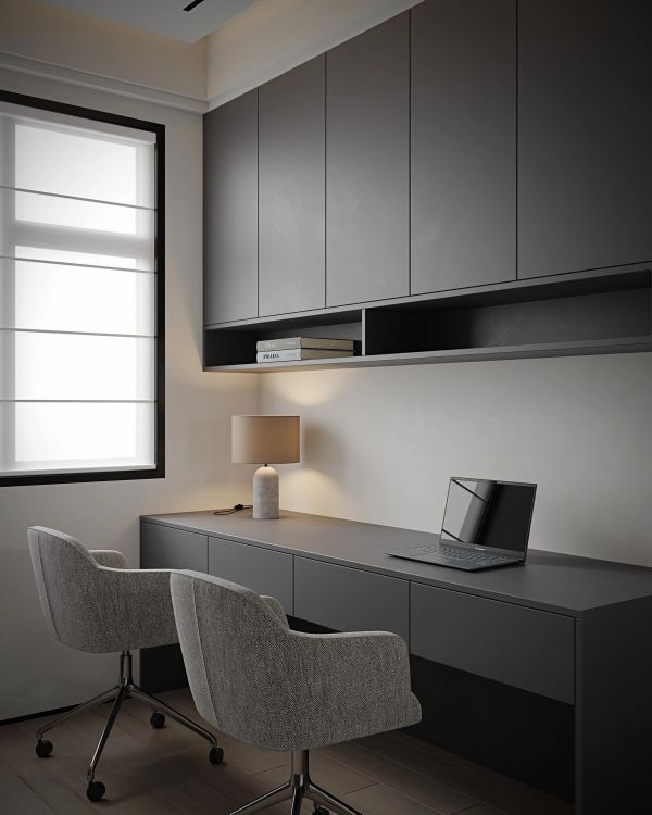 这个现代风格的设计,以灰色和白色为主色调,设计简约而优雅,每一处细节都体现了设计师的匠心独运,营造出了一个舒适、宁静且充满现代感的居住环境。