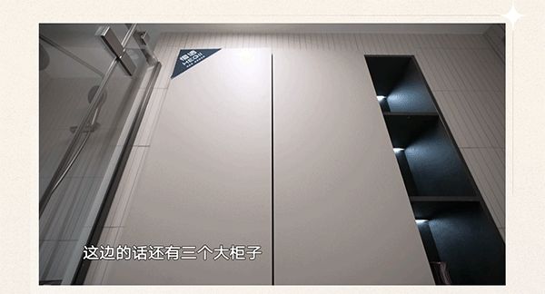超强收纳系统,镜柜科学分层,升级美妆收纳设计,满足女业主日常美妆收纳需求;考虑每位家庭成员的使用需求,羽枫主柜选用的是大开门款式,方便大件囤货,让家里的每一件物品都有处可放;同时搭配内嵌柜子,极致利用空间,打造多元储物空间。